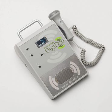 The DigiDop Model 990R is a counter top or wall mount Doppler that features a larger, more powerful forward facing speaker for room filling sound. Advanced digital sound processing enhances the sounds you want to hear while reducing those you don’t. The 990R provides a large, sharp, bright display of the heart rate. The display also indicates battery, volume, and signal strength status. The readout can easily be seen in a variety of conditions. The powerful digital processor in the DigiDop performs a true auto-correlation calculation for fast, accurate heart rate.
