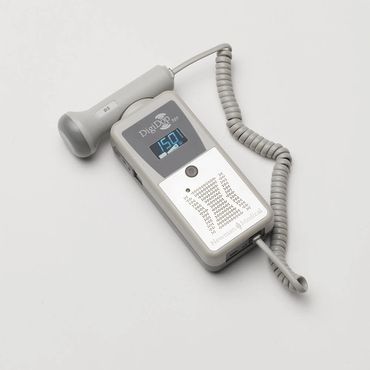 The DD-301 is an audio only obstetrical Doppler with recharger. The display indicates battery, volume, and signal strength status - DOES NOT display heart rate. The powerful digital processor in the DigiDop utilizes Digital Signal Clarity - DSC to eliminate background noise and amplify a strong clear signal.