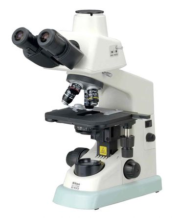 Features newly developed high-intensity LED illumination, providing uniform brightness in the entire field of view. A halogen illumination model is also available. Nikon's infinity corrected optics, designed especially for the Eclipse E100 microscope, uses state-of-the-art technology to produce outstanding performance. Nikon's CFI* optics achieve flat, sharp images that minimize distortion. Transparent specimens can be observed with phase contrast observation. Featuring a simple and easy-to-use design for beginners, strong rigidity to ensure high accuracy and a long life, and an easy-to-store structure, the Eclipse E100 is the perfect choice for a variety of purposes, including educational and routine laboratory research.