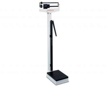DETECTO’s world-renowned eye-level mechanical weigh beam physician scales feature a heavy-duty solid stable 10.5 x 14.5 inch (27 x 37 cm) platform, a dual-reading die-cast weighbeam which may be read from either side of the scale, and mild steel construction with powder coat paint finish for long-lasting quality. The scale is 59 inches (150 cm) high and is available in lb, lb/kg, and kg models. Height rod, wheels and handpost combinations are available. The dual-reading height rod measures in inches and centimeters at a glance (24-84 inch / 60-212 cm). The slip-resistant black platform cover may be removed for easy cleaning. 13 different models are available with capacities of 440 lb/200 kg, 450 lb, or 200 kg.